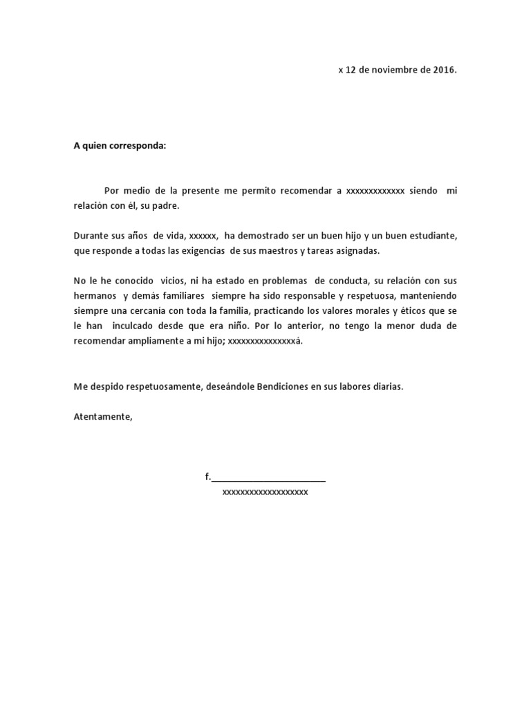 Resultado De Imagen Para Carta De Recomendacion Familiar Para