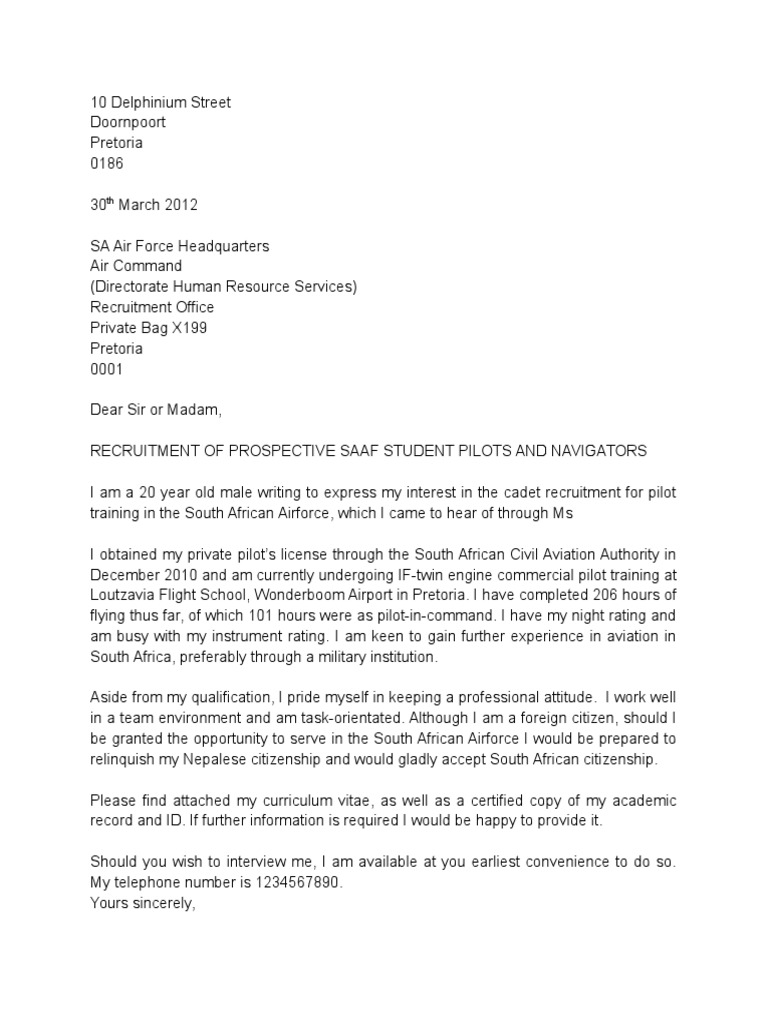 Cover Letter For Cadet Pilots