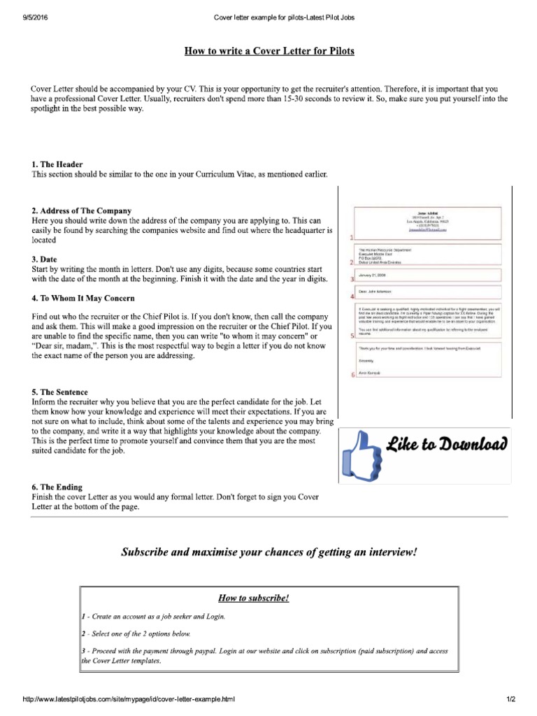 A Sample Cover Letter And A Guide On How To Write A Pilot Cover
