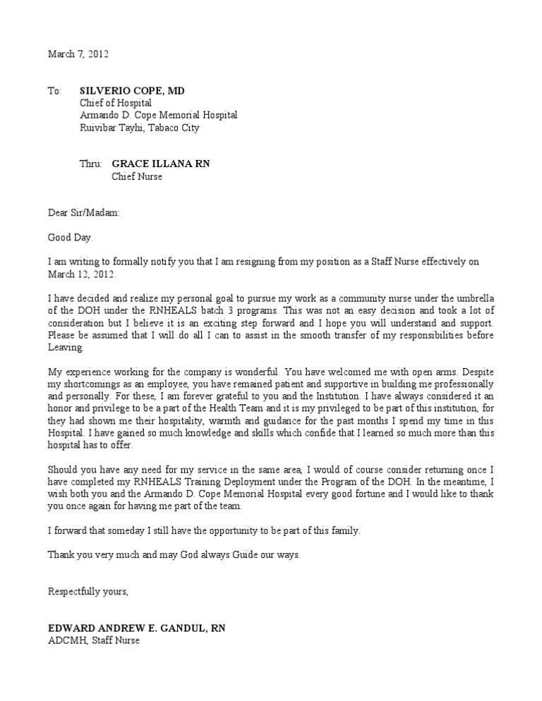 Resignation Letter Review General Nursing Allnurses